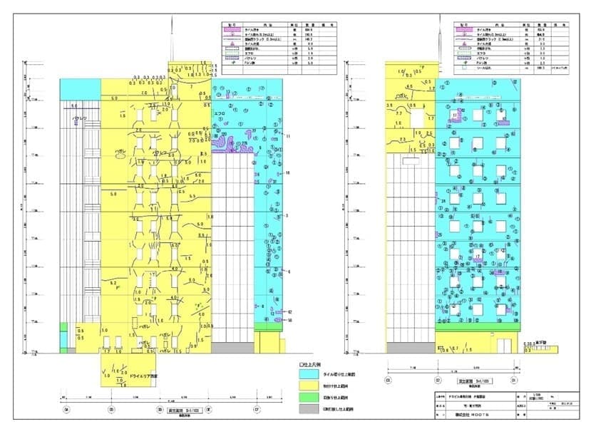 外壁調査報告図 現地調査を行い補修箇所の状況を図面に落として報告します